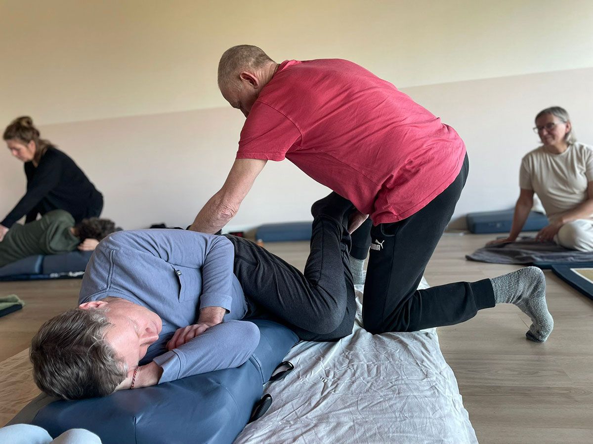 Ook besteden we aandacht aan de diagnose voor structurele shiatsu. We onderzoeken beenlengteverschil in buikligging om te zien waar in het bekken of de wervelkolom een correctieve oefening nodig is. Er kan sprake zijn van bijvoorbeeld een scheefstand van het heiligbeen, schaambeen of heupbeen.